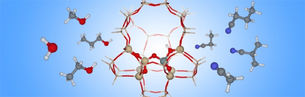 Since many industrially important processes start with the adsorption of guest molecules inside the pores of an acidic zeolite catalyst, a proper estimate of the adsorption enthalpy is of paramount importance. In this contribution, we report ab initio calculations on the adsorption of water, alcohols and nitriles at the bridging Brønsted sites of H-ZSM-5, using both cluster and periodic models to account for the zeolite environment. Stabilization of the adsorption complexes results from hydrogen bonding between the guest molecule and the framework, as well as from embedding, i.e. van der Waals interactions with the pore walls. Large-cluster calculations with different DFT-methods, in particular B3LYP(-D), PBE(-D) M062X(-D) and ωB97X-D, are tested for their ability to reproduce the experimental heats of adsorption available in literature. (J. Phys. Chem. B 1997, 101, 3811-3817) A proper account of dispersion interactions is found to be crucial to describe the experimental trend across a series of adsorbates of increasing size, i.e. an increase in adsorption enthalpy by 10-15 kJ/mol for each additional carbon atom. The extended-cluster model is shown to offer an attractive alternative to periodic simulations on the entire H-ZSM-5 unit cell, resulting in virtually identical results for the final adsorption enthalpies. Comparing calculated stretch frequencies of the zeolite acid sites and the adsorbate functional groups with experimental IR-data additionally confirms the cluster approach provides an appropriate representation of the adsorption complexes.