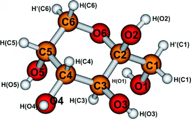 Stable free radical formation in fructose single crystals X-irradiated at room temperature was investigated using Q-band electron paramagnetic resonance (EPR), electron nuclear double resonance (ENDOR), and ENDOR induced EPR (EIE) techniques. ENDOR angular variations in the three main crystallographic planes allowed an unambiguous determination of 12 proton HFC tensors. From the EIE studies, these hyperfine interactions were assigned to six different radical species, labeled F1−F6. Two of the radicals (F1 and F2) were studied previously by Vanhaelewyn et al. [Vanhaelewyn, G. C. A. M.; Pauwels, E.; Callens, F. J.; Waroquier, M.; Sagstuen, E.; Matthys, P. J. Phys. Chem. A 2006, 110, 2147.] and Tarpan et al. [Tarpan, M. A.; Vrielinck, H.; De Cooman, H.; Callens, F. J. J. Phys. Chem. A 2009, 113, 7994.]. The other four radicals are reported here for the first time and periodic density functional theory (DFT) calculations were used to aid their structural identification. For the radical F3 a C3 carbon centered radical with a carbonyl group at the C4 position is proposed. The close similarity in HFC tensors suggests that F4 and F5 originate from the same type of radical stabilized in two slightly different conformations. For these radicals a C2 carbon centered radical model with a carbonyl group situated at the C3 position is proposed. A rather exotic C2 centered radical model is proposed for F6.