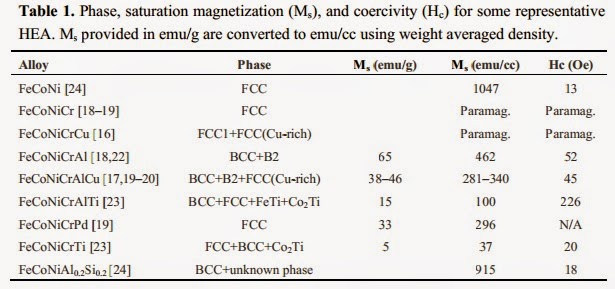 High-Entropy Alloys (HEAs) are defined as alloys composed of multiple principal elements, commonly more than five, at near equatomic composition, which tend to form simple crystalline structures such as bcc or fcc. They are the subject of intense recent international research. Because of their high formability and strength, combined with low density and acclaimed high temperature stability, HEAs are expected to replace superalloys in energy sectors and aero-space applications. In terms of fracture toughness, data exist that they outperform conventional metal alloys. Recently it was also reported that magnetic properties of high entropy alloys are promising.
